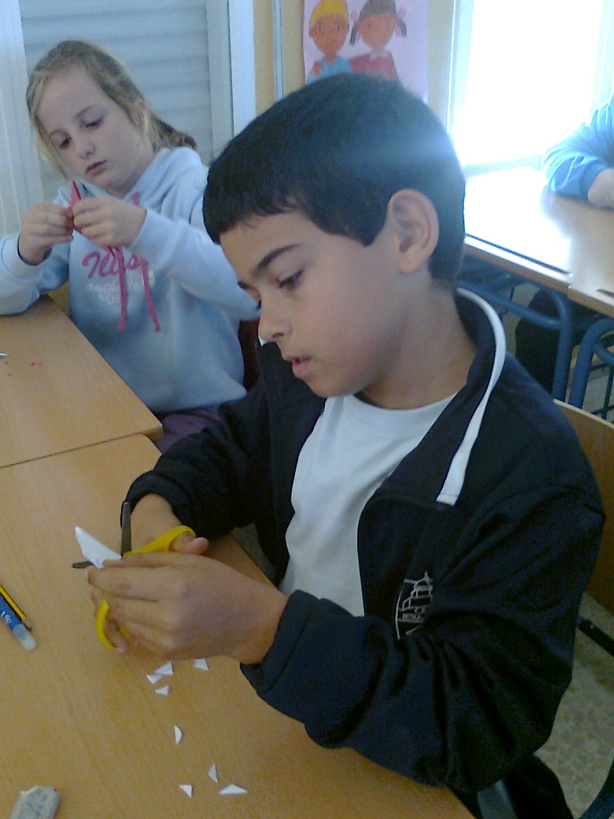 Esta mañana los/as chicos/as han elaborado, con motivo de la llegada de la Navidad, unas Fenstersterne para que las coloquen en la ventana de su habitación.